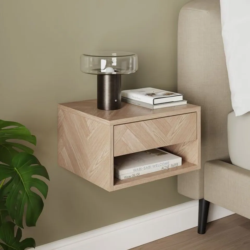 BOXED CASPAR FLOATING BEDSIDE, MID OAK EFFECT (1 BOX)
