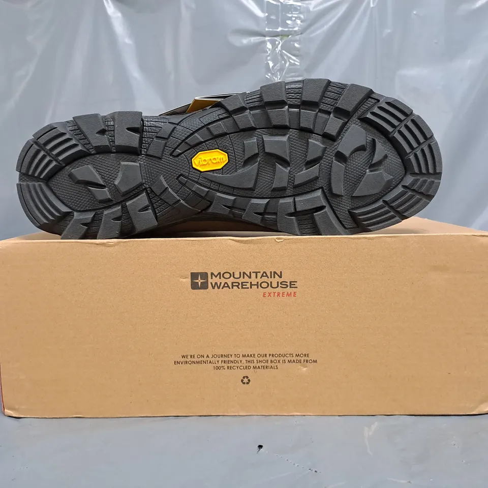 BOXED PAIR OF MOUNTAIN WAREHOUSE ODYSSEY EXTREME VIBRAM WATERPROOF HIKING BOOTS IN BROWN SIZE UK 11