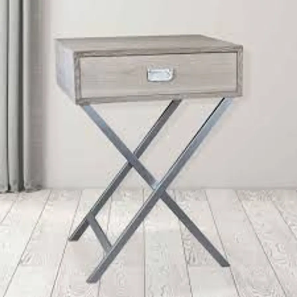 BRAND NEW HOMESDIRECT365 NATURAL WOOD TOP AND SILVER METAL LEGS SIDE TABLE