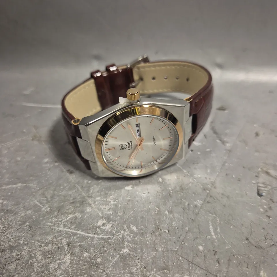 MENS ERNEST FERDINAND WATCH – DAY DATE CALENDAR DIAL – LEATHER STRAP
