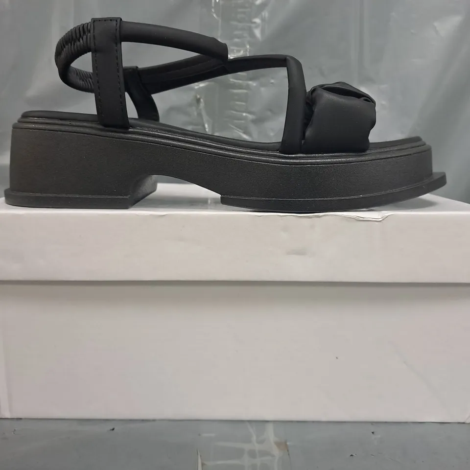 BOXED PAIR OF HUI ER MEI OPEN TOE LOW PLATFORM SANDALS IN BLACK SIZE EU 40