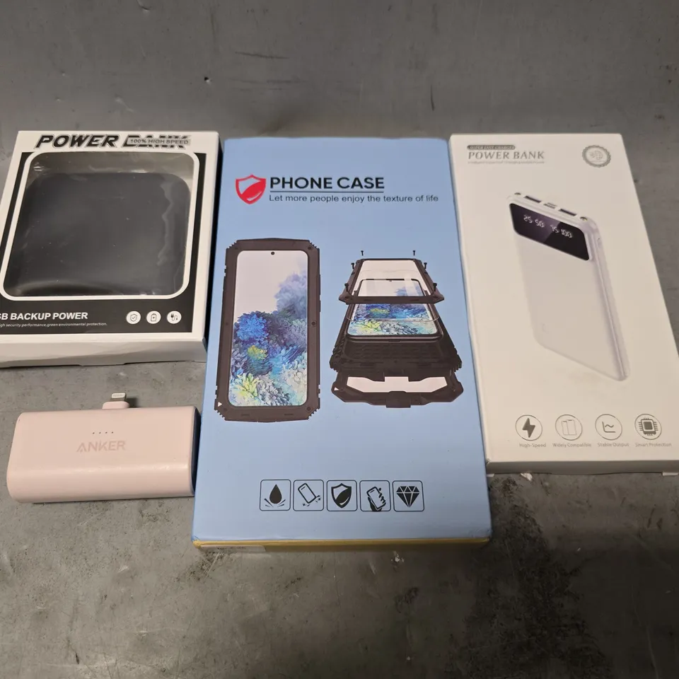 APPROXIMATELY 10 ASSORTED ITEMS TO INCLUDE - PHONE CASE , POWER BANK . ANKER POWER BANK ETC