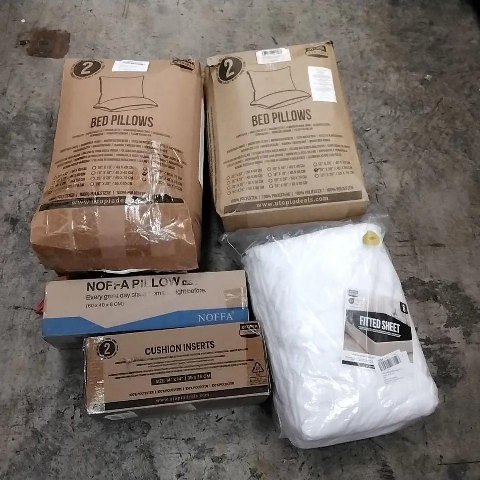 PALLET TO CONTAIN A LARGE QUANTITY OF BEDROOM AND SITTING SUPPORT PRODUCTS TO INCLUDE; CUSHIONS, PILLOWS FITTED SHEETS ETC