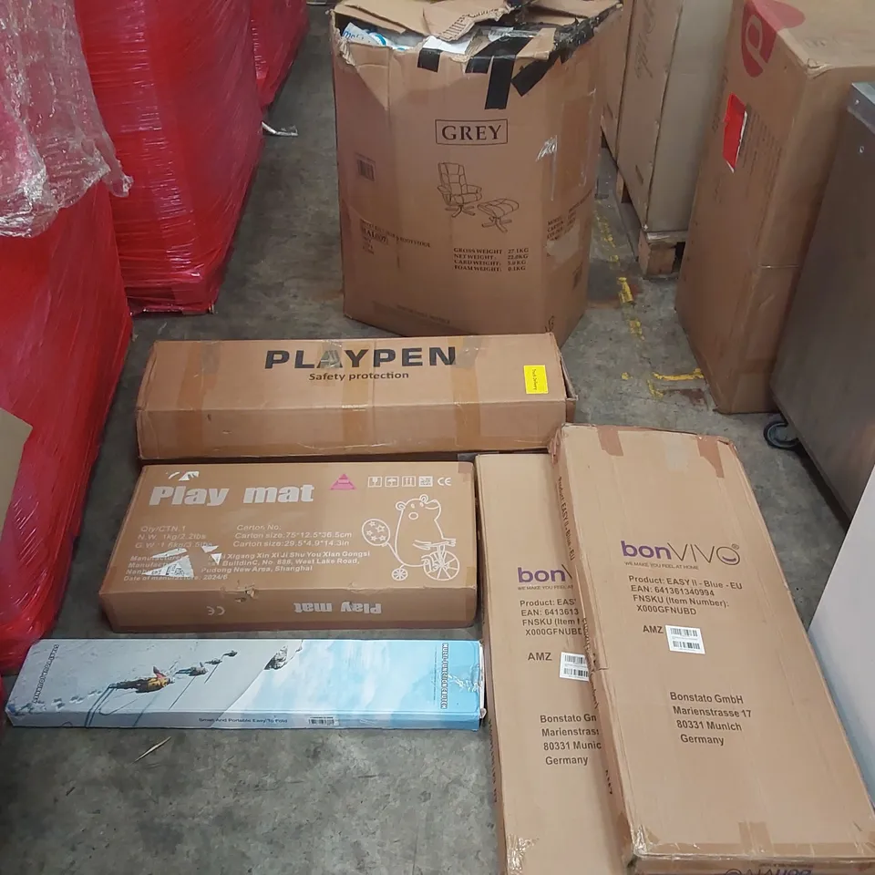 PALLET OF ASSORTED ITEMS INCLUDING: BONVIVO EASY II, MATTRESS, PLAY PEN, PLAY MAT, MULTIFUNCTIONAL CRUTCH ECT