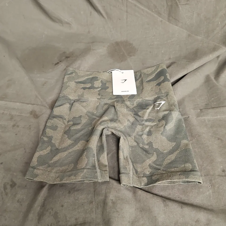 GYMSHARK ADAPT CAMO SEAMLESS SHORTS IN GREEN SIZE XXS