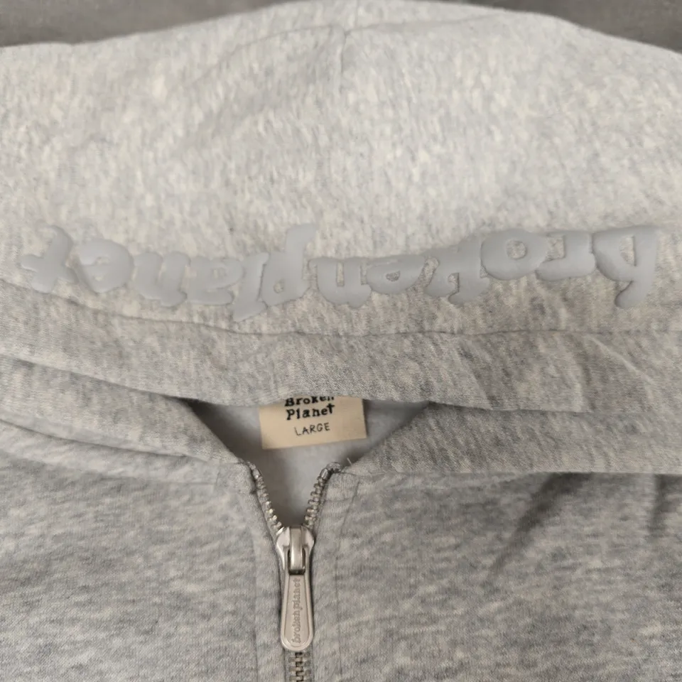 BROKEN PLANET GREY ZIP THROUGH HOODIE - LARGE