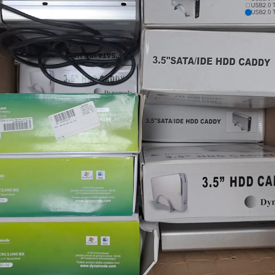 BOX OF APPROXIMATELY 15 ASSORTED 3.5" HDD ENCLOSURES