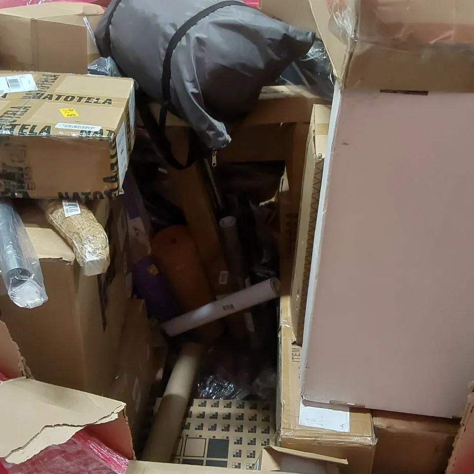 PALLET OF ASSORTED ITEMS INCLUDING: MINIFIRE FHD 24" MONITOR, FOLDING WAGON, HOSE REEL, FULL MOTION CANTILEVER MOUNT, OSCILLATING SPRINKLER ECT