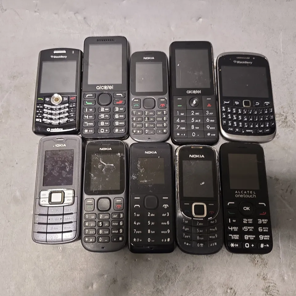 SET OF APPROXIMATELY 10 ASSORTED BROKEN PHONES TO INCLUDE - BLACK BERRY , NOKIA , ALCATEL