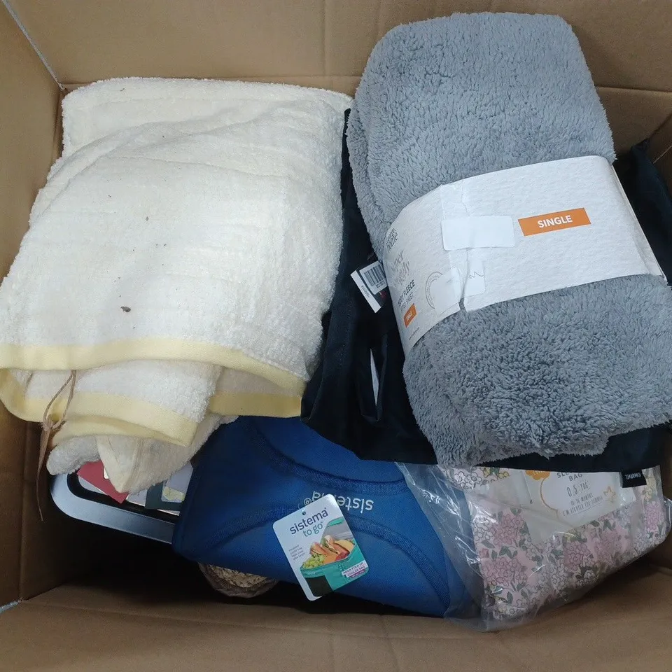 APPROXIMATELY 15 ASSORTED HOUSEHOLD ITEMS TO INCLUDE 1.13L FLASK, BATH SHEET, TEDDY FLEECE FITTED SHEET, ETC - COLLECTION ONLY