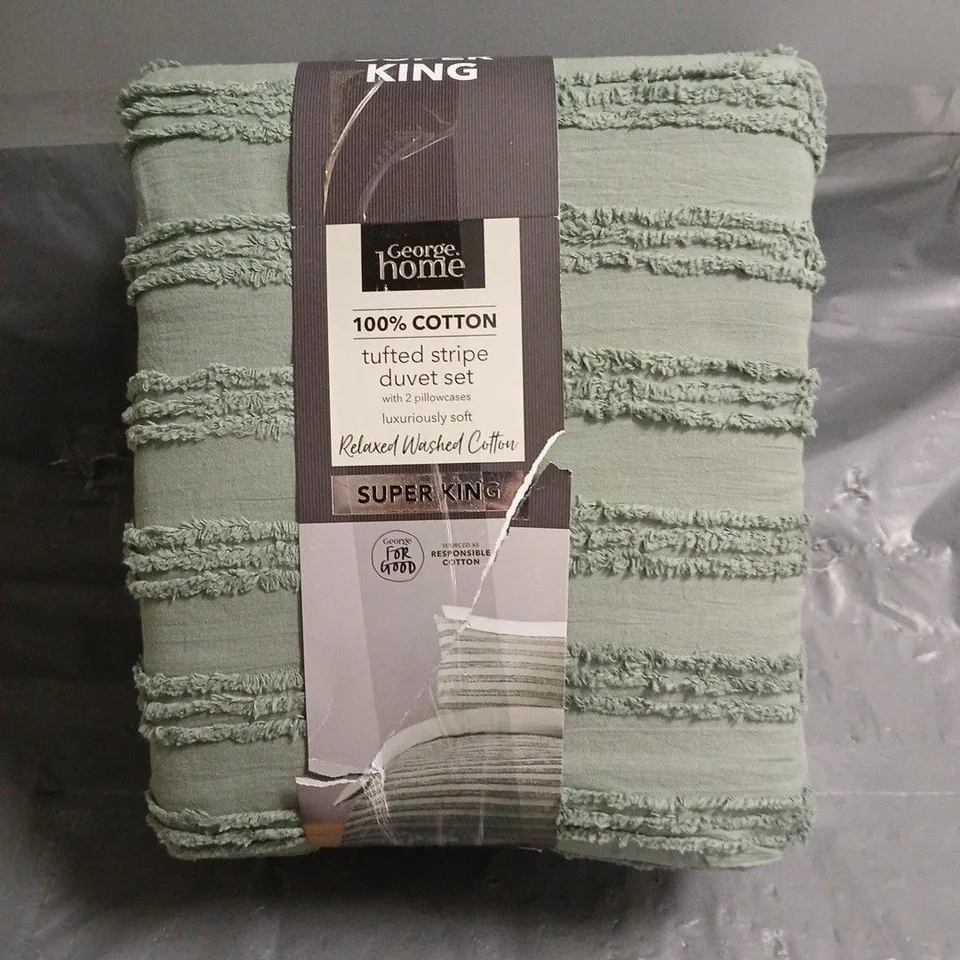 TUFTED STRIPE DUVET SET IN DARK GREEN SIZE SUPER KING