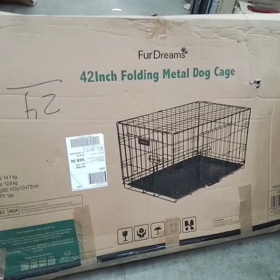 BOXED 42 INCH FOLDING METAL DOG CAGE