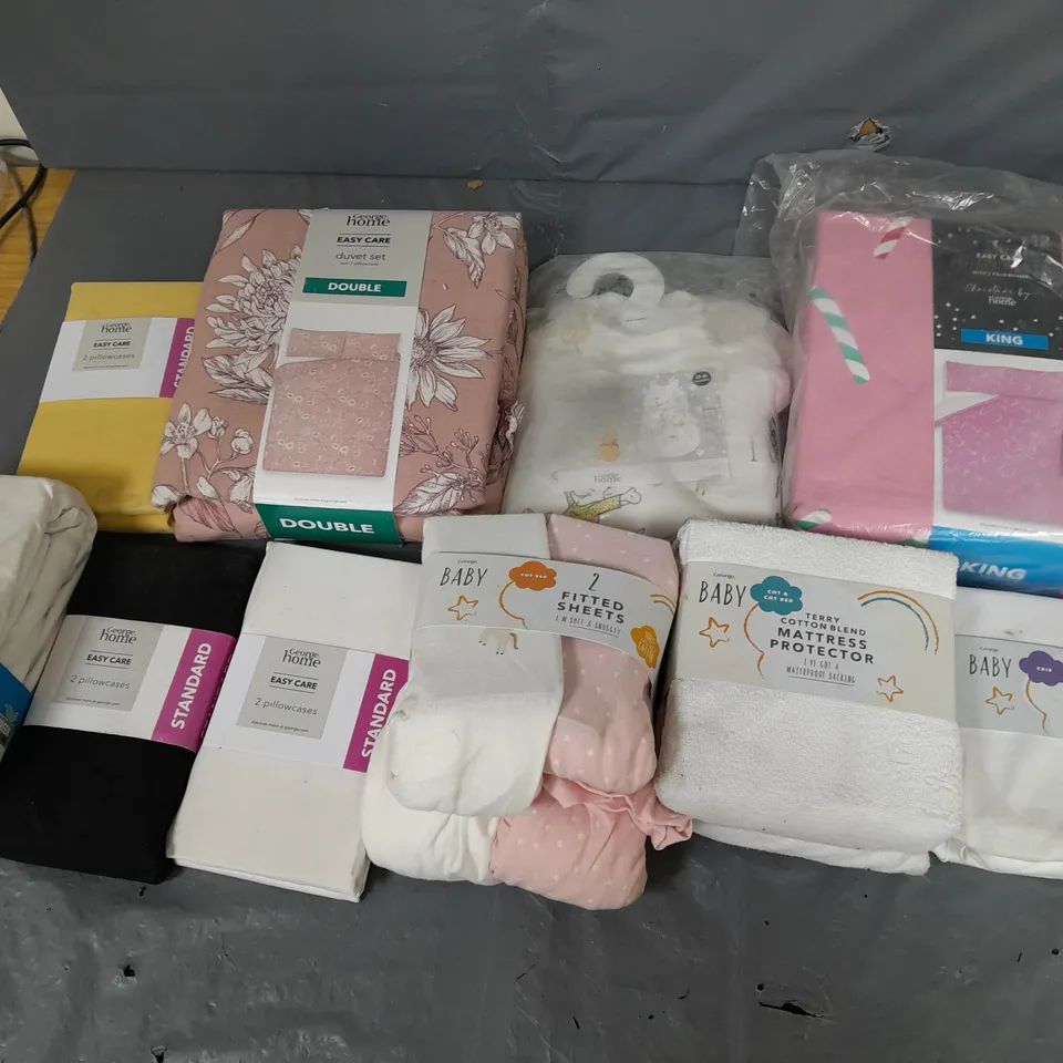 APPROXIMATELY 8 ASSORTED HOUSEHOLD ITEMS TO INCLUDE VARIOUS BEDDING IN VARIOUS SIZES AND STYLES