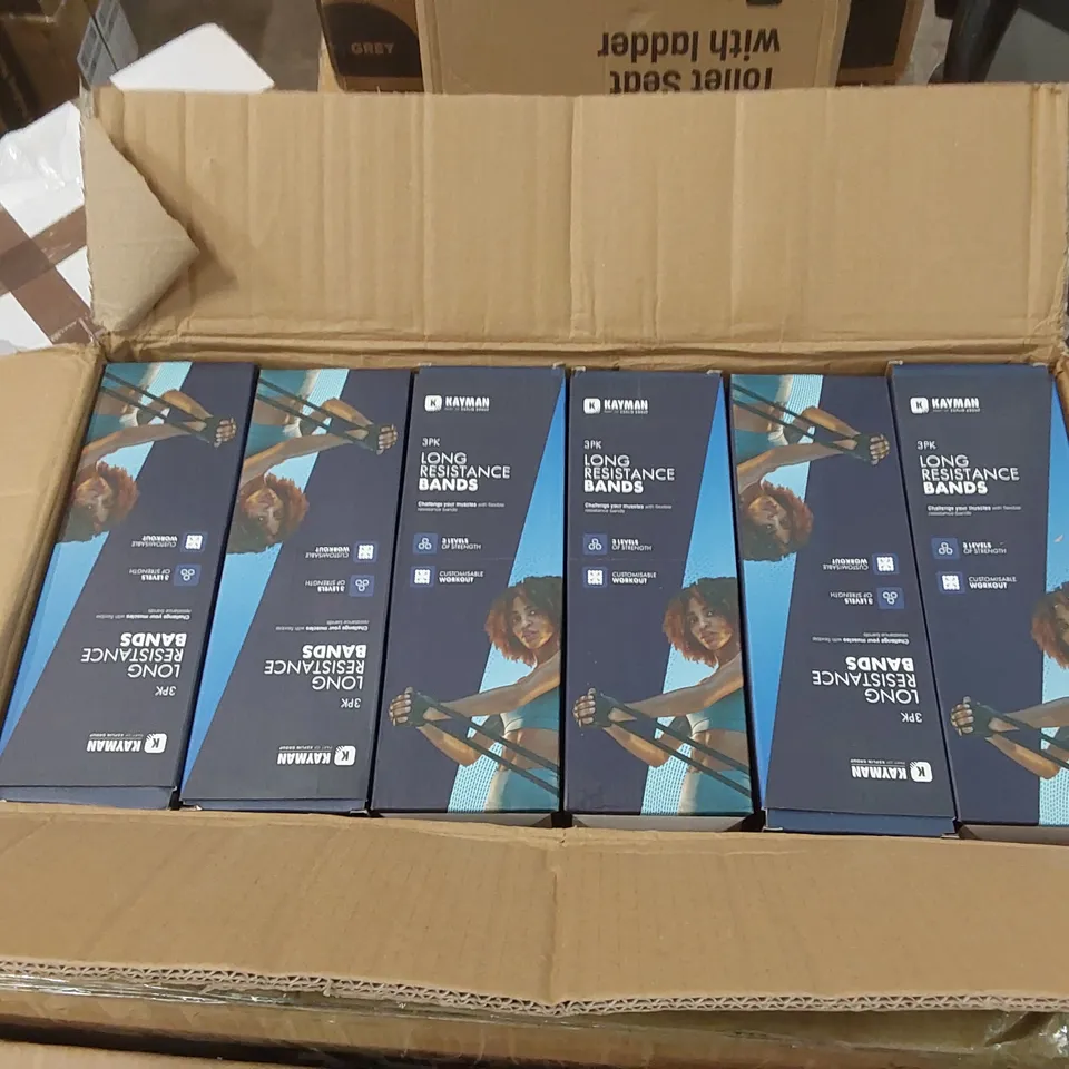 BOX CONTAINING APPROXIMATELY 24x 3PCS KAYMAN LONG RESISTANCE BANDS