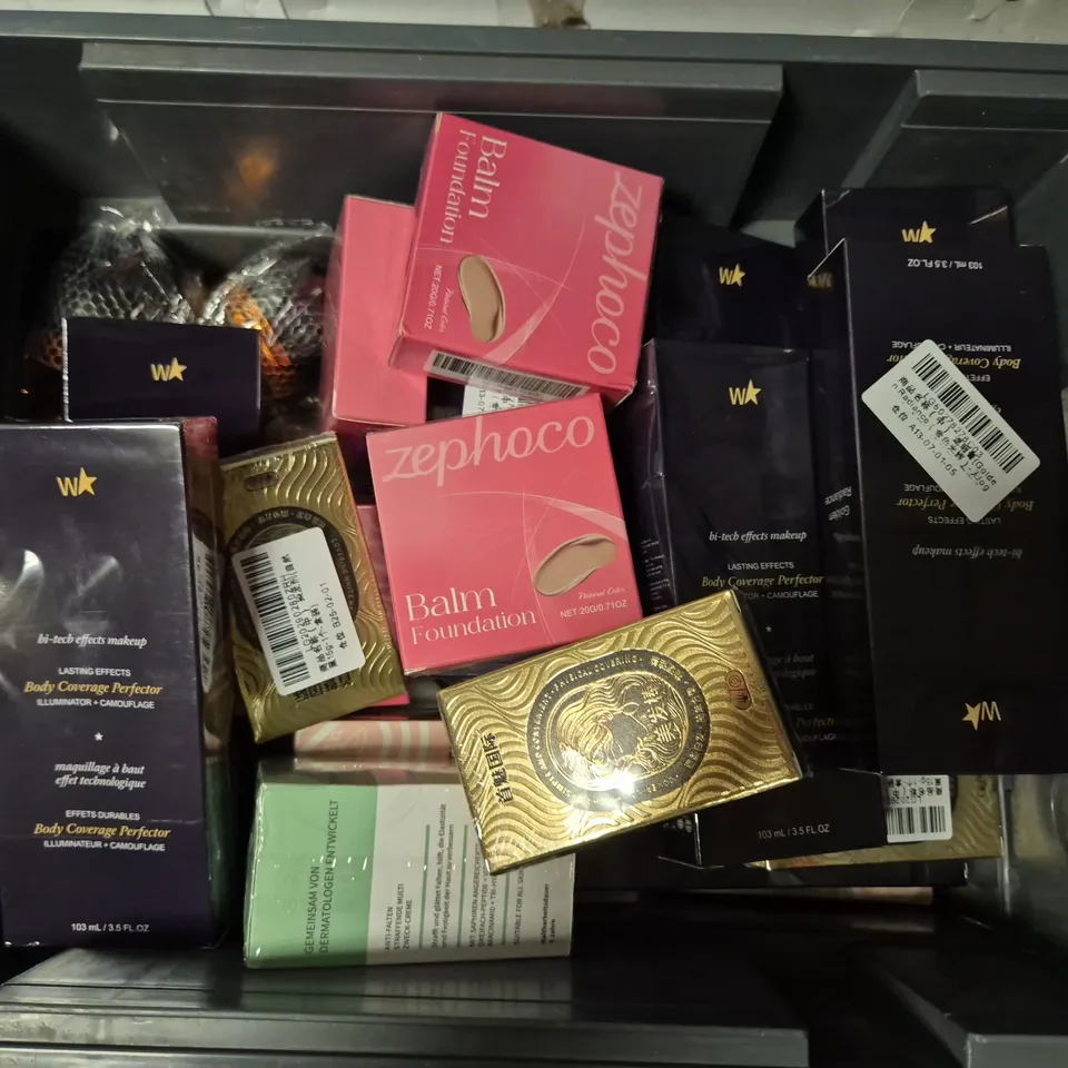 APPROXIMATELY 22 ASSORTED COSMETICS ITEMS TO INCLUDE BODY COVERAGE PERFECTER, ZEPHOCO BALM FOUNDATION, NICOR ALOE GEL, ETC