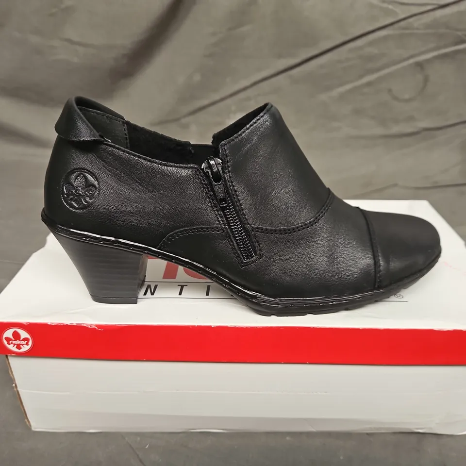 BOXED PAIR OF WOMENS RIKER SIDE ZIP BOOTS - UK SIZE 39