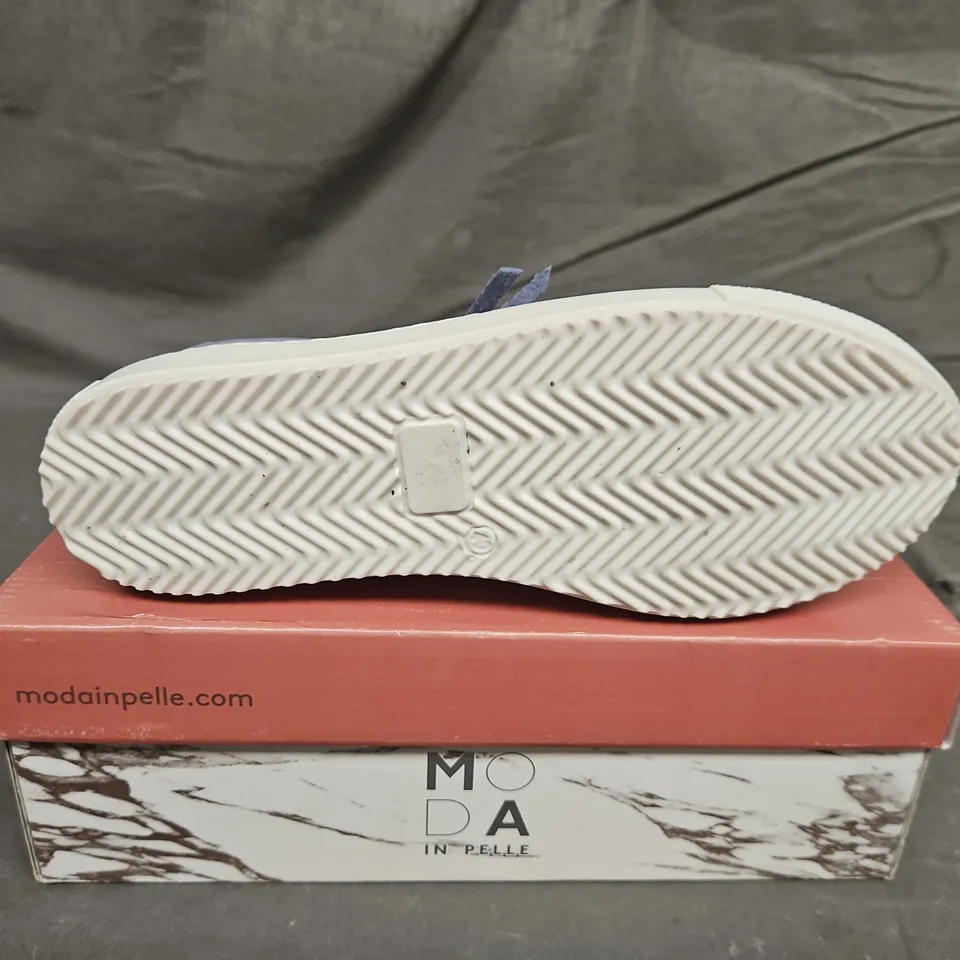 BOXED PAIR OF MODA IN PELLE LIGHT BLUE LEATHER ZIP FEATURE LACE UP TRAINERS - UK SIZE 40