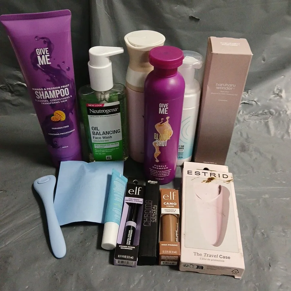 APPROXIMATELY 20 ASSORTED HEALTH & BEAUTY PRODUCTS TO INCLUDE ESTRID RAZOR, ELF H2O PROOF EYELINER, GIVE ME SHAMPOO, ETC