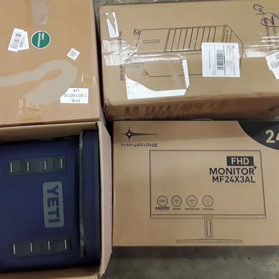 PALLET TO CONTAIN AN ASSORTMENT OF HOUSEHOLD ITEMS TO INCLUDE AIR COOLER, PORTABLE WASHING MACHINE, CAMPING BAGS AND MONITORS ECT