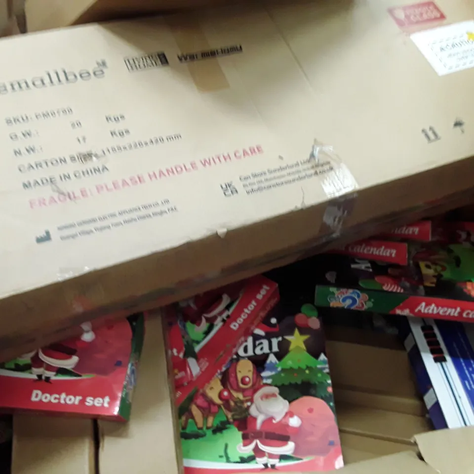 PALLET TO CONTAIN AN ASSORTMENT OF HOUSEHOLD ITEMS TO INCLUDE BLADELESS PURIFIER AND HEATER, ADVENT CALENDARS, ADJUSTABLE SQUARE FURNITURE LEGS AND PULL UP BAR ECT