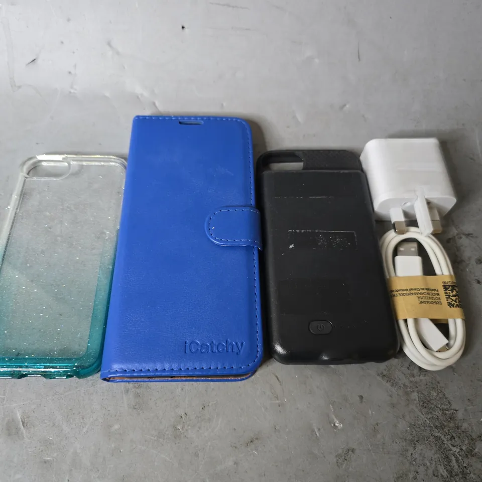 APPROXIMATELY 20 ASSORTED ITEMS TO INCLUDE -USB TO USB-C, PHONE CASES , BATTERY PACK PHONE CASE ETC