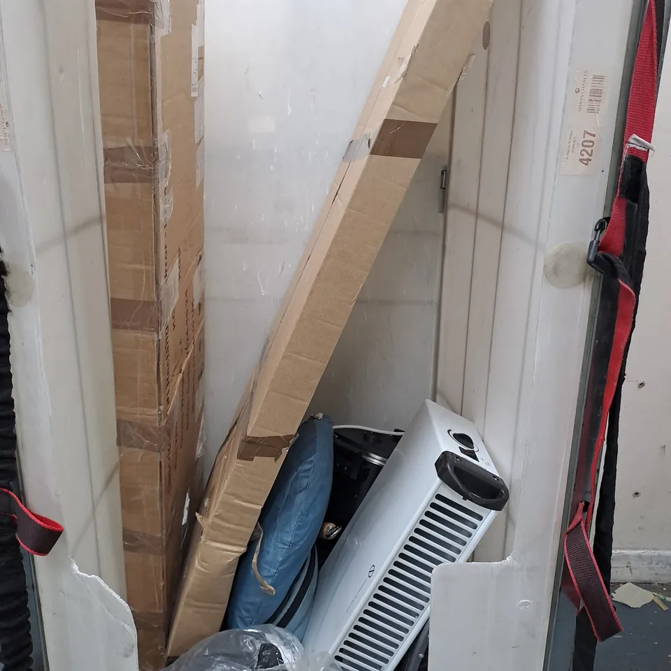 CAGE OF APPROXIMATELY 5 ASSORTED HOUSEHOLD ITEMS TO INCLUDE HEATER, ETC - COLLECTION ONLY