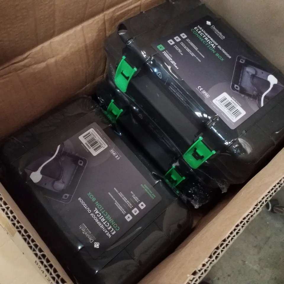 BOX CONTAINING 3 DESIRETECH WEATHERPROOF OUTDOOR CONNECTION BOXES