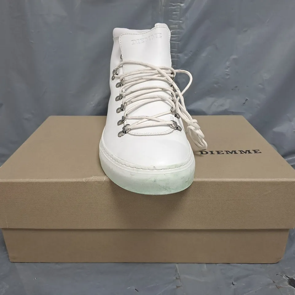 BOXED PAIR OF DIEMME MAROSTICA MID SHOES IN WHITE SIZE UK 10