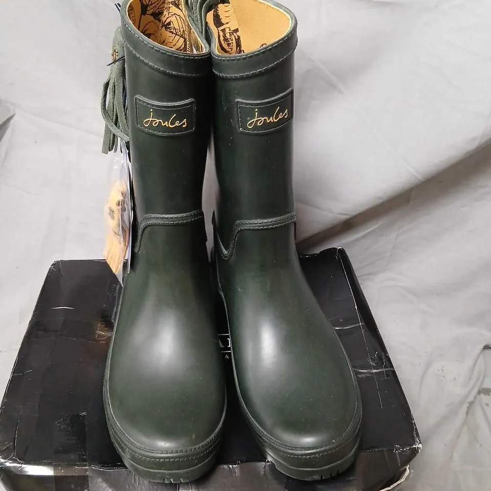 JOULES WOMEN'S GREEN KNEE-HIGH WELLINGTON BOOTS – RUBBER WITH FLORAL LINING SIZE 7