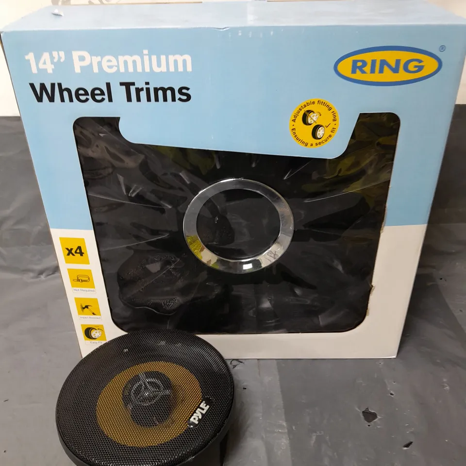 2 X ASSORTED VEHICLE PRODUCTS TO INCLUDE RING 14" WHEEL TRIMS & 6.5" SPEAKER