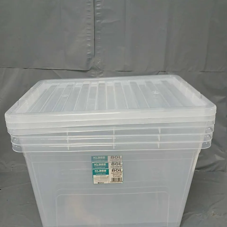 3 KLASS 80L CLEAR STORAGE BOXES WITH LIDS