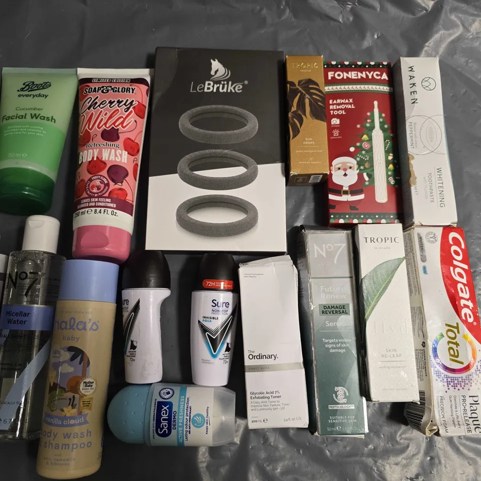 LOT OF APPROXIMATELY 26 ASSORTED HEALTH AND BEAUTY ITEMS TO INCLUDE WAKEN TOOTHPASTE, CHERRY BODY WASH AND SURE DEODERANT