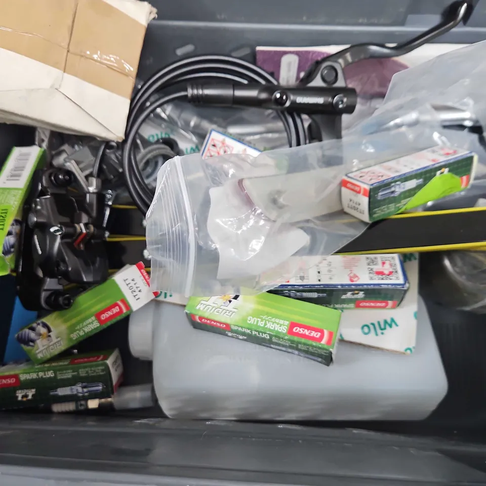 TOTE OF APPROXIMATELY 7 ASSORTED VEHICLE ITEMS TO INCLUDE - HIFLO FILTRO AIR FILTER , TEXTAR BRAKE PADS ETC