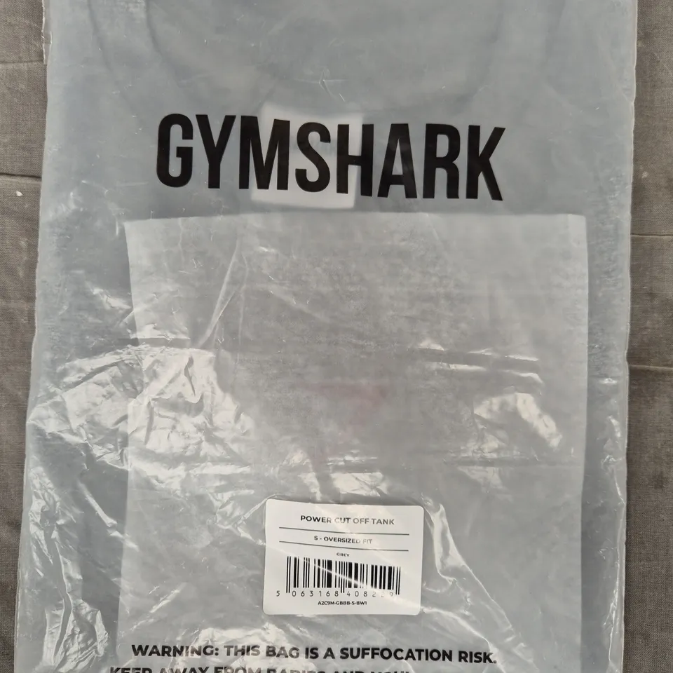 GYM SHARK OVERSIZED FIT POWER CUT OFF TANK IN GREY SIZE SMALL