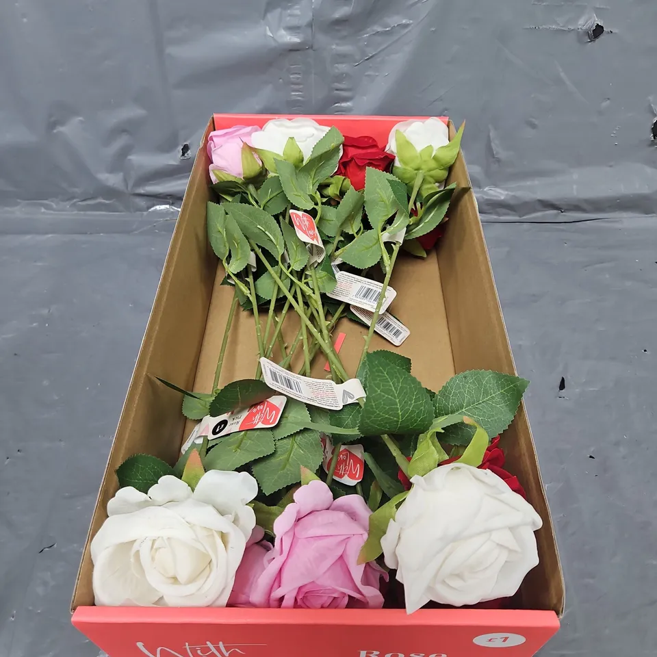 APPROXIMATELY 10 BOXES OF VALENTINES DAY WITH LOVE FAUX ROSES