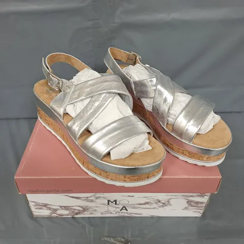 BOXED PAIR OF MODA IN PELLE AEDRIENNE LEATHER SANDALS IN GOLD SIZE 4