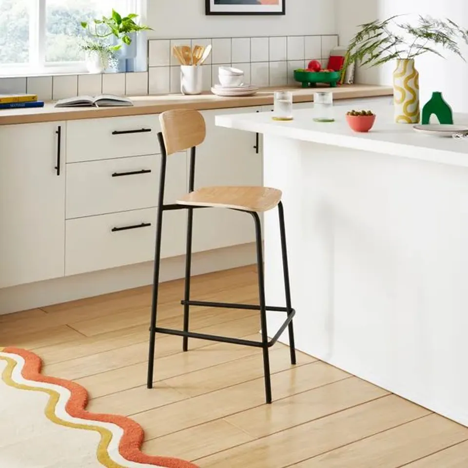 BOXED ELEMENTS GRIFFIN BAR STOOL - BLACK OAK (1 BOX)