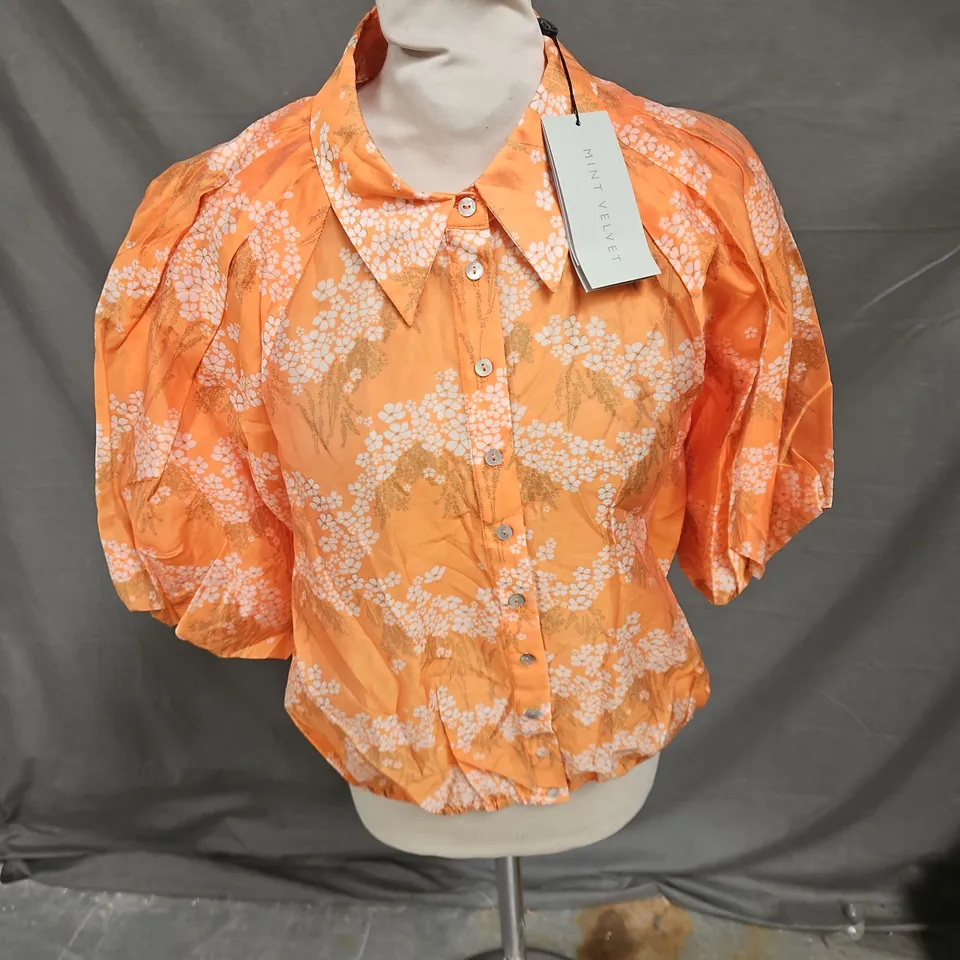 MINT VELVET FLORAL PRINT PUFF SLEEVE SHIRT IN ORANGE SIZE L