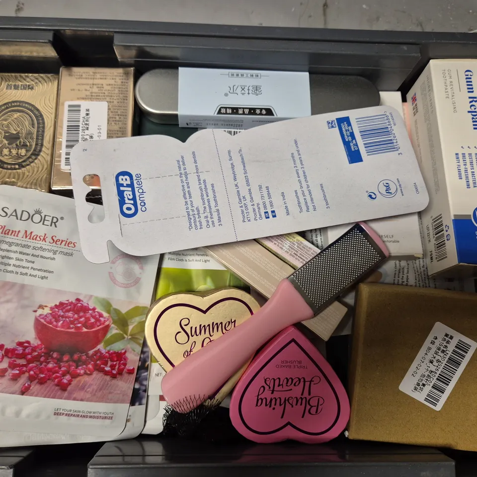 APPROXIMATELY 22 ASSORTED COSMETICS ITEMS TO INCLUDE ORAL-B MEGA PACK TOOTHBRUSHES, ZEPHOCO BALM FOUNDATION, FLEXIFLOW DETANGLER, ETC