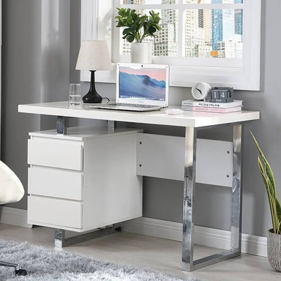BOXED SYDNEY COMPUTER DESK IN HIGH GREY GLOSS WITH 3 DRAWERS (1 BOX)